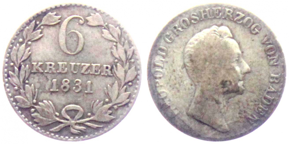 Baden - 1831 - Leopold I. (1830-1852) - 6 Kreuzer - ss