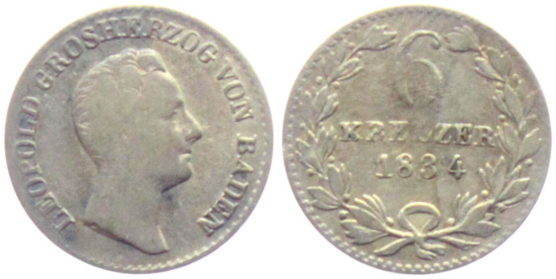 Baden - 1834 - Leopold I. (1830-1852) - 6 Kreuzer - ss