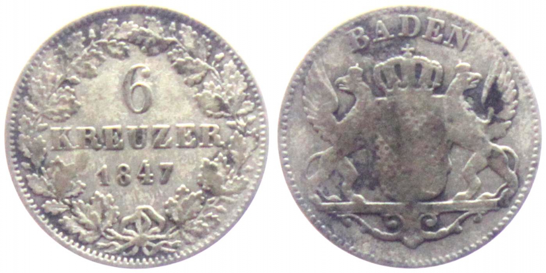 Baden - 1847 - Leopold I. (1830-1852) - 6 Kreuzer - ss