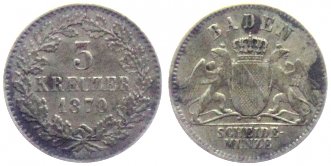 Baden - 1870 - Friedrich I. (1852-1907) - 3 Kreuzer - ss