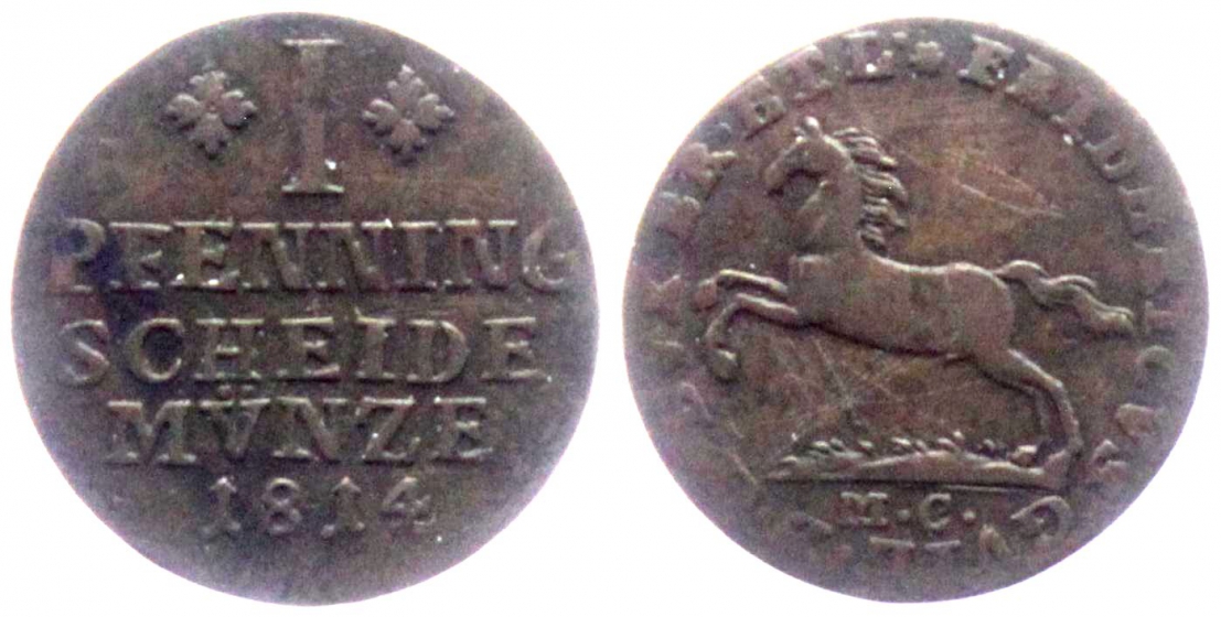Braunschweig-Wolfenbüttel - 1814 MC - Friedrich Wilhelm (1806-1815) - 1 Pfennig - ss+