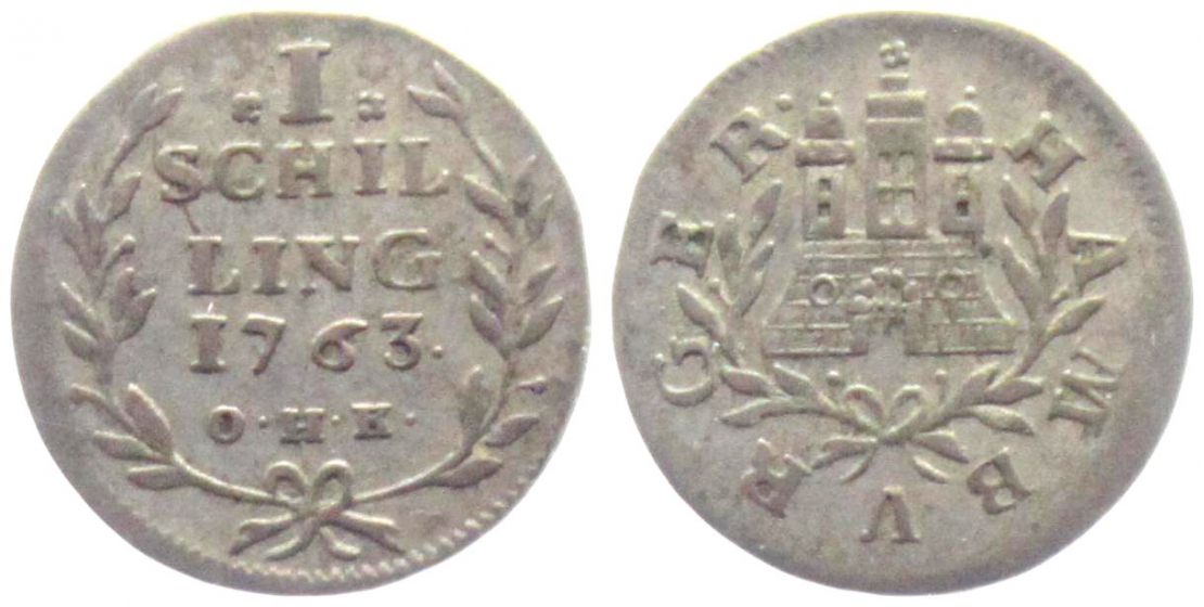 Hamburg - 1763 OHR - Stadttor - 1 Schilling - vz