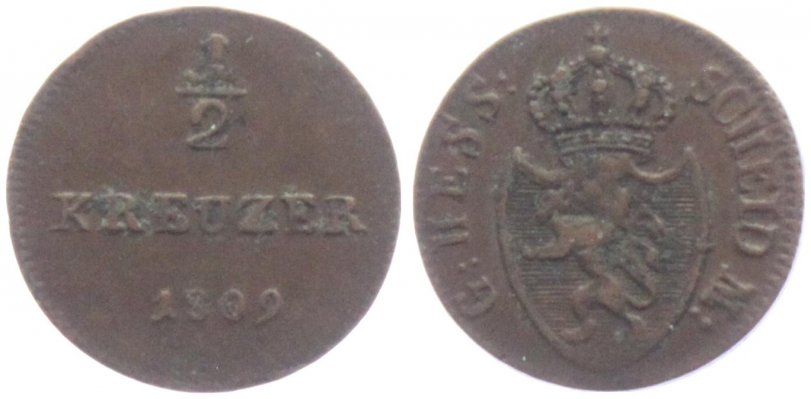 Hessen-Darmstadt - 1809 - Ludwig I. (1806-1830) - 1/2 Kreuzer - vz