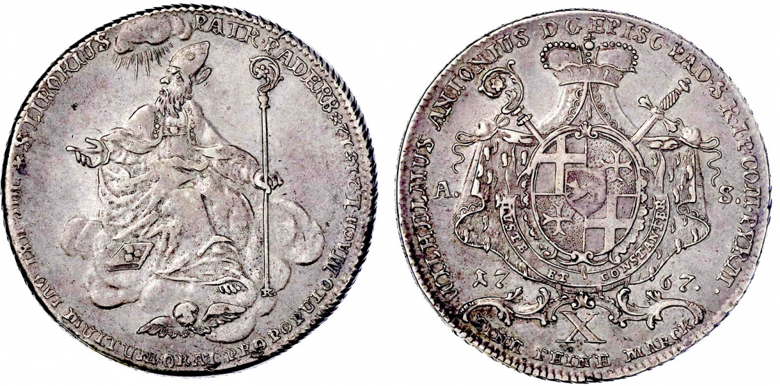 Vs.: Hl. Liborius mit Bischofsstab nach links auf Wolke sitzend.