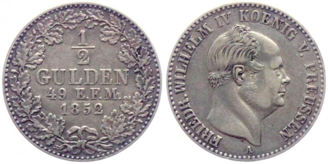 Preussen - 1852 A - Friedrich Wilhelm IV. (1840-1861) - 1/2 Gulden - vz