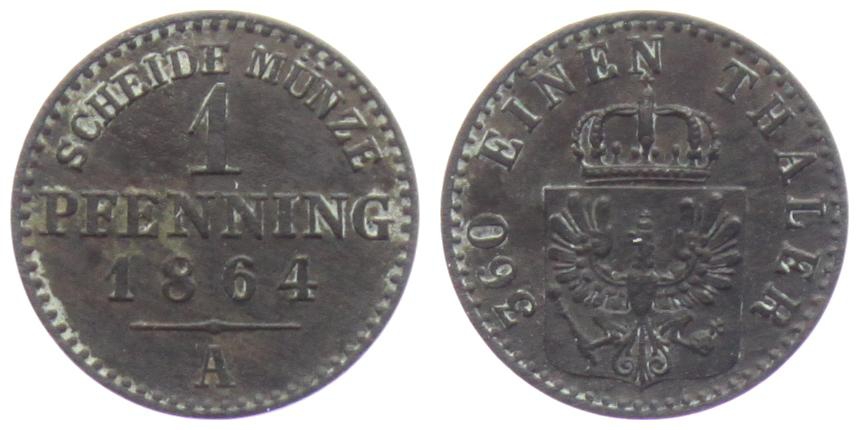Preussen - 1864 A - Wilhelm I. (1861-1888) - 1 Pfennig - vz-st