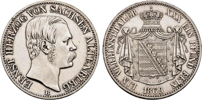 Sachsen-Altenburg - 1869 B - Ernst (1853-1908) - Taler - f.vz