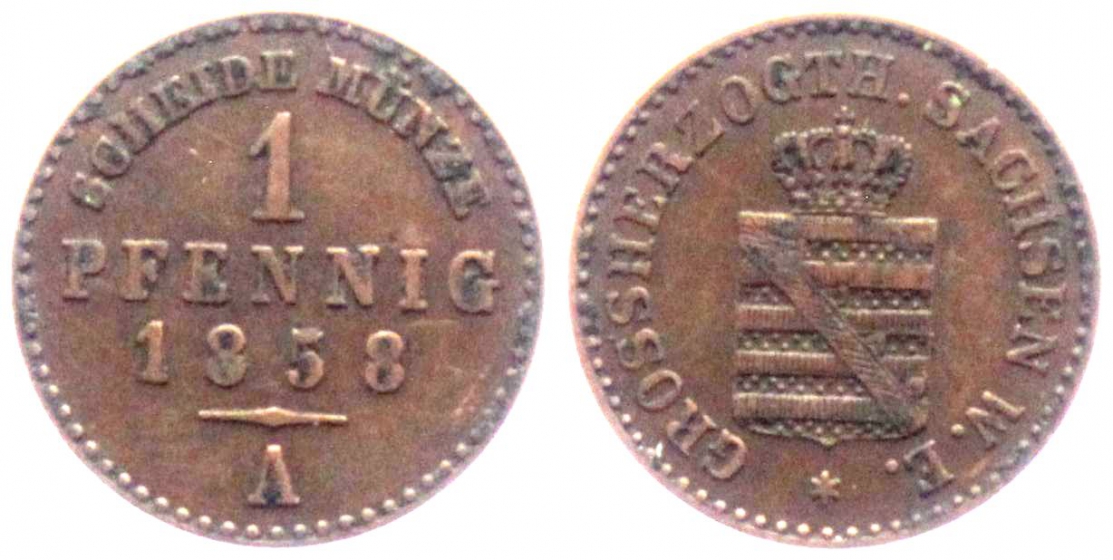 Sachsen-Weimar-Eisenach - 1858 A - Carl Alexander (1853-1901) - 1 Pfennig - vz-st