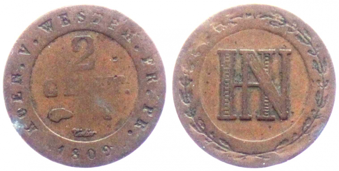 Westfalen, Königreich - 1809 C - Hieronymus Napoleon (1807-1813) - 2 Centimes - s
