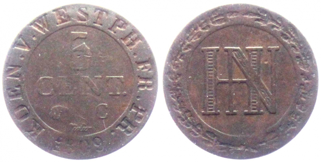 Westfalen, Königreich - 1809 C - Hieronymus Napoleon (1807-1813) - 5 Centimes - s-ss