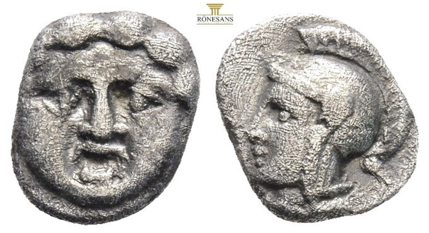 Rs.: Kopf der Athene mit attischem Helm nach links, hinten Astragalos.