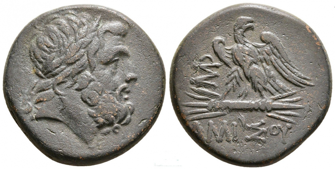 Vs.: Bekrönter Kopf des Zeus nach rechts.