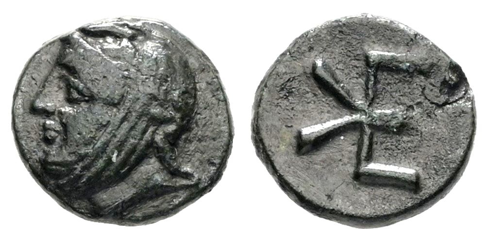 Vs. Kopf des Satrapen mit Lorbeerkranz und Tiara nach links.