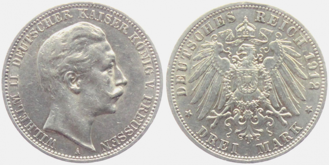 Preussen - J 103 - 1912 A - Kaiser Wilhelm II. (1888-1918) - 3 Mark - ss-vz