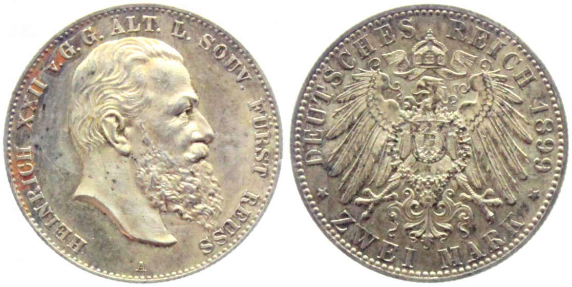 Reuss, ältere Linie - 1899 A - Heinrich XXII. (1859-1902) - 2 Mark - vz-Kr.
