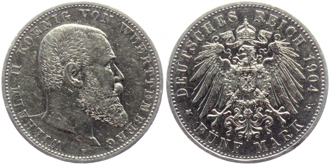 Württemberg - J 176 - 1904 F - Wilhelm (1891-1918) - 5 Mark - ss