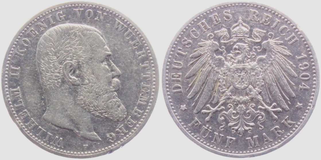 Württemberg - J 176 - 1904 F - Wilhelm II. (1891-1918) - 5 Mark - ss+