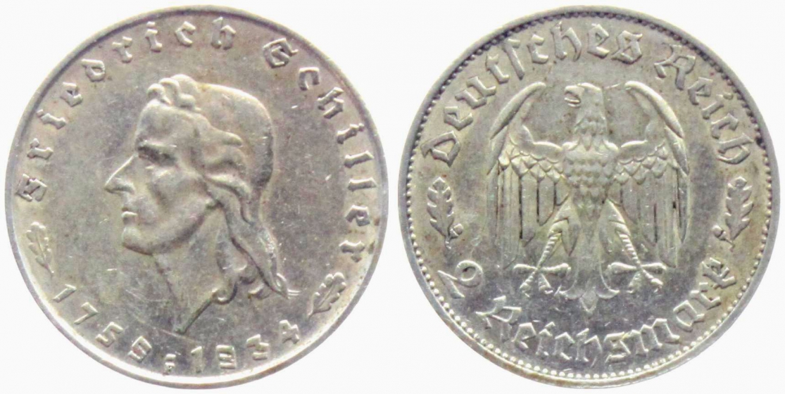 Drittes Reich - J 358 - 1934 F - Schiller - 2 Reichsmark - vz