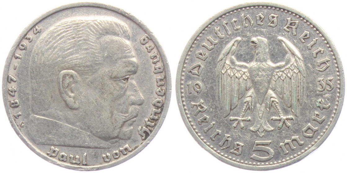 Drittes Reich - J 360 - 1935 F - Hindenburg - mit Reichsadler - 5 Reichsmark - ss