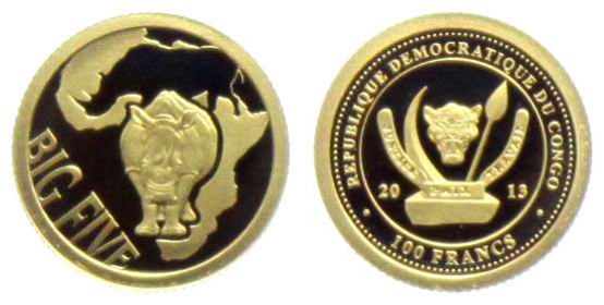 Kongo - 2013 - Nashorn - Big Five - 100 Francs - PP in Kapsel