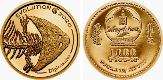 Mongolei - 2020 - Dinosaurier - Diplocaulus - 1000 Tögrög - PP