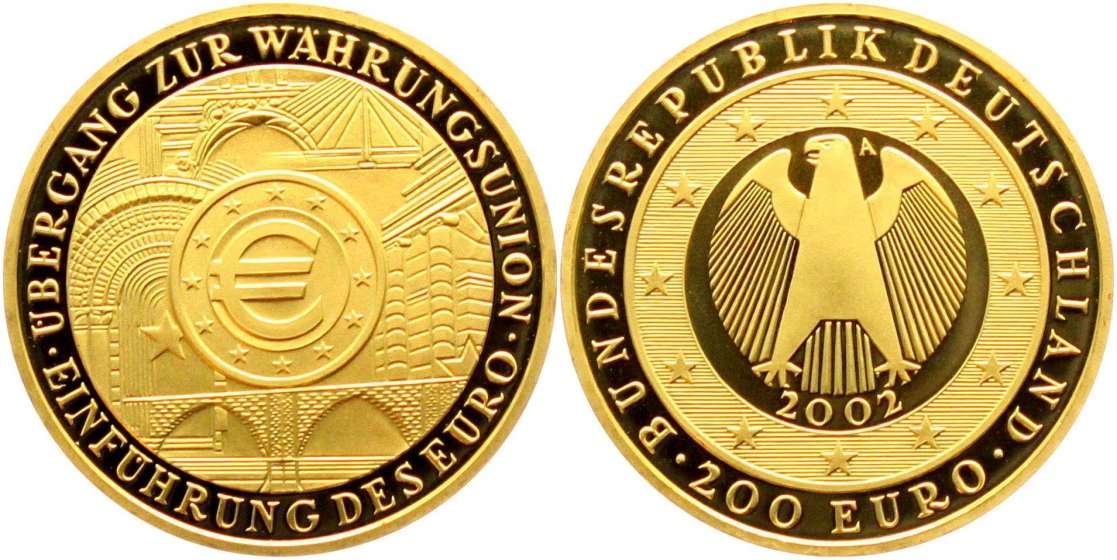 BRD - 2002 A - Währungsunion - Euroeinführung - 200 Euro - st in Box mit Zertifikat