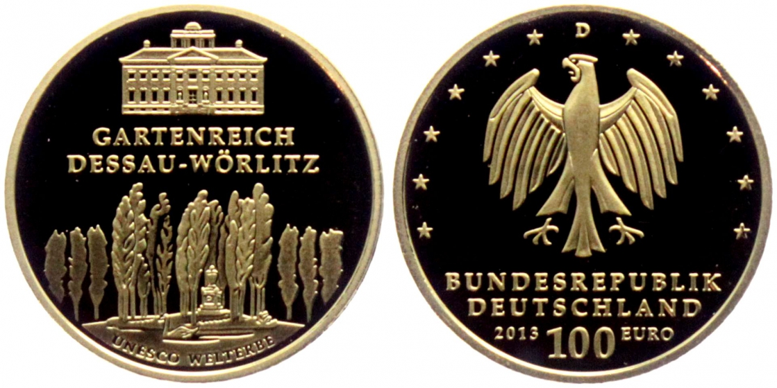 BRD - 2013 D - Dessau-Wörlitz - UNESCU Weltkulturerbe - 100 Euro - st in Box mit Zertifikat