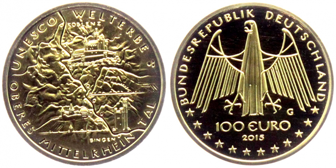 BRD - 2015 G - Oberes Mittelrheintal - UNESCO-Welterbe - 100 Euro - st in Box mit Zertifikat
